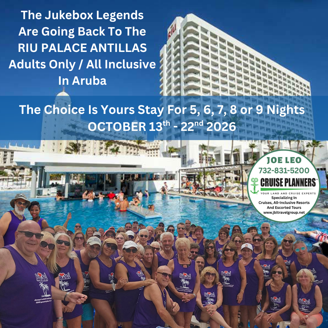 The Jukebox Legends 2026 Aruba TripOCTOBER 13TH - 22ND 2026DETAILS WILL BE ANNOUNCED SOON
